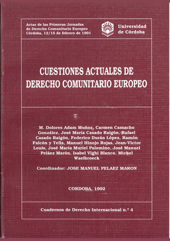 Peláez Marón, José Manuel (aut.) (1995), Cuestiones actuales de derecho comunitario europeo III. Córdoba: UCOPress – Editorial Universidad de Córdoba.