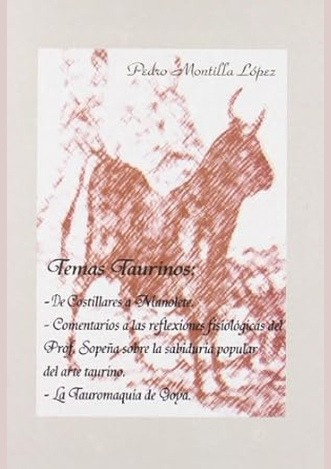 Montilla López, Pedro (aut.) (2005), Temas taurinos: Breve paseo desde Costillares a Manolete. Comentarios a los reflexiones fisiológicas del Prof. Sopena sobre la sabiduría popular del arte taurino. La Tauromaquia de Goya. Córdoba: UCOPress – Editorial Universidad de Córdoba.