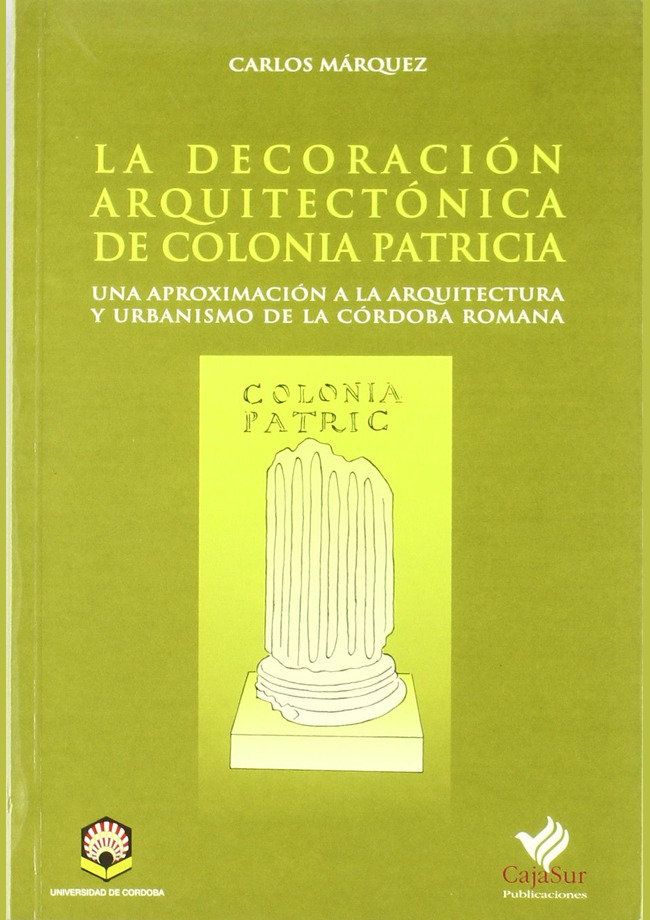 Márquez Moreno, Carlos (aut.) (1998), La decoración arquitectónica de Colonia Patricia. Una aproximación a la Arquitectura y Urbanismo de La Córdoba Romana. Córdoba: UCOPress – Editorial Universidad de Córdoba.