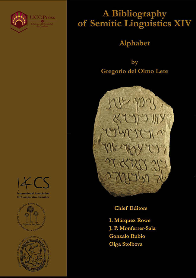 del Olmo Lete, Gregorio (dir.); Márquez Rowe, Ignacio (ed.); Monferrer Sala, Juan Pedro (ed.); Rubio, Gonzalo (ed.) y Stolbova, Olga (ed.) (2025), A Bibliography of Semitic Linguistics XIV: Alphabet. Córdoba: UCOPress – Editorial Universidad de Córdoba.
