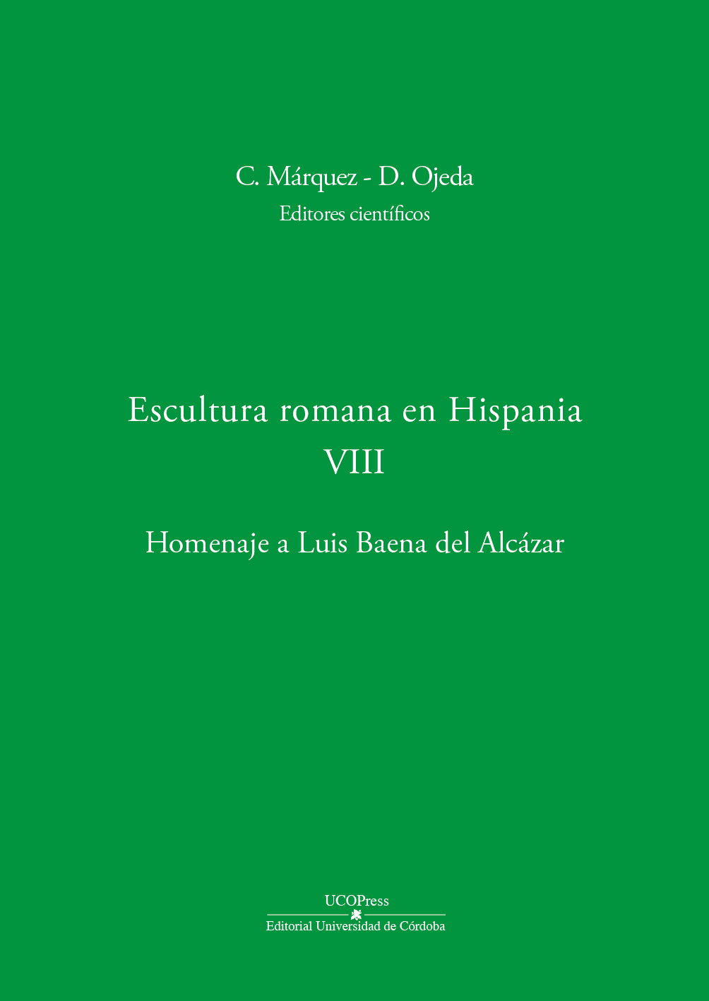 Márquez Moreno, Carlos (coord.) y Ojeda Nogales, David (coord.) (2018), Escultura romana en Hispania VIII. Homenaje a Luis Baena del Alcázar. Córdoba: UCOPress – Editorial Universidad de Córdoba.